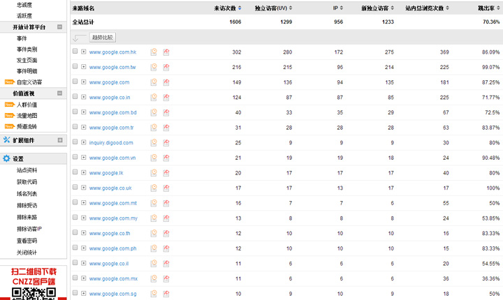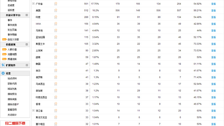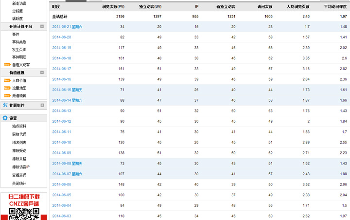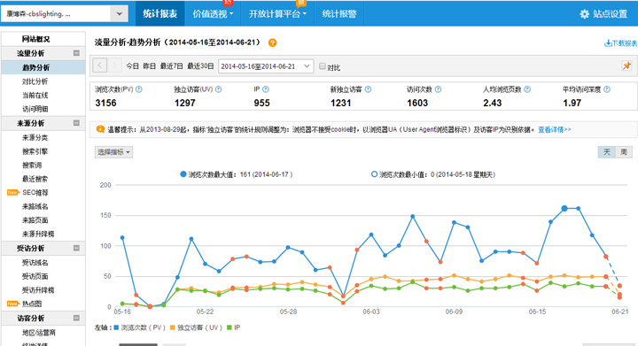 访问统计:PV:3156,独立访客:1297,新独立访客:1231,访问次数:1603