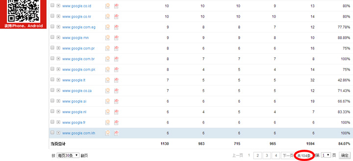 (从此图可以看出,所有访客均来自全球共104个不同国家google搜索)