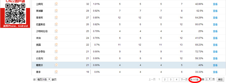 (此图可以看出所有访客均来自全球117个国家或地区)