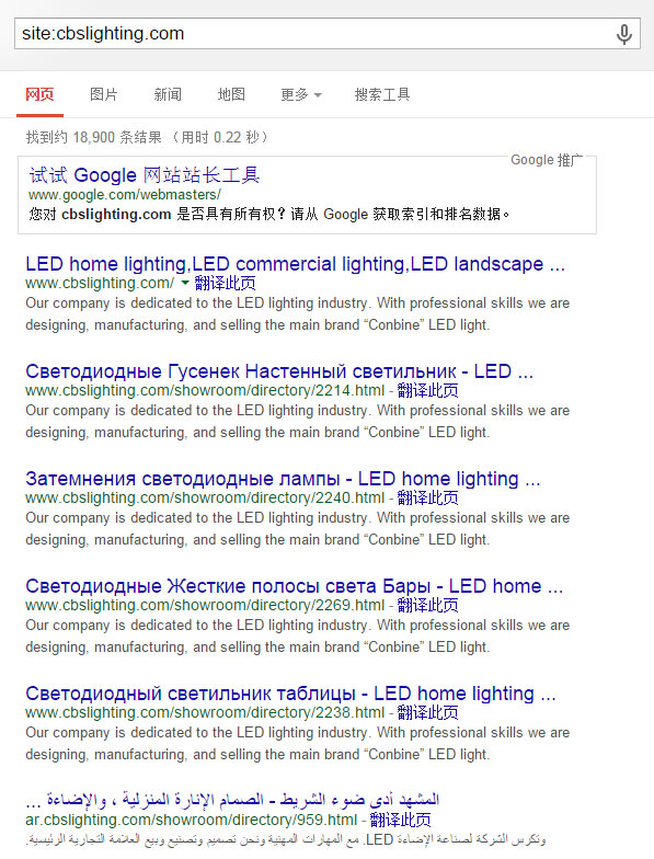 该网站上线及被google收录18900个页面,收录速度比较快,扩大了网站的搜索入口,增加网站曝光度。